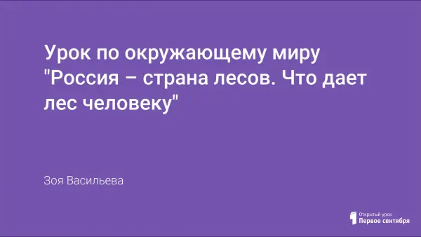 Урок окружающего мира знакомит учащихся со значением леса в природе и для человека. Задачи: закрепить отличие тайги, смешанного и широколиственного лесов; рассмотреть экологические проблемы в лесной полосе, возникающие по вине человека; развивать познавательный интерес к изучению природы; воспитывать уважение и любовь к природе, культуру поведения.