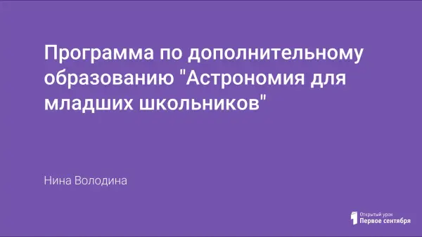 Программа рассчитана на детей младшего школьного возраста, которые проявляют интерес к астрономии, интересуются звёздами, планетами и другими космическими телами и объектами. На занятиях объединения младшие школьники получат знания о Солнце и Солнечной системе, представление о Вселенной, галактиках, звёздах, и о том, как человек осваивает космос.