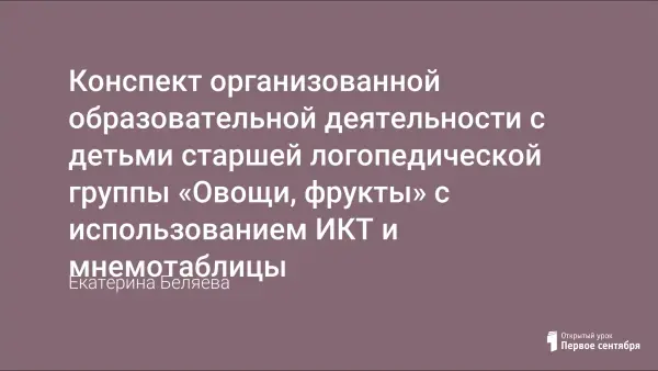 Цели и задачи: расширять и закреплять знания детей об овощах и фруктах, учить составлять описательный рассказ с опорой на мнемотаблицу; познакомить детей с понятиями «слово-предмет», «слово-признак»; пополнять словарь детей словами, обозначающими свойства и качества предметов; закреплять умение согласовывать имена существительные с именами прилагательными; учить отвечать на вопрос полным предложением; формировать обобщающие понятия «фрукты», «овощи».