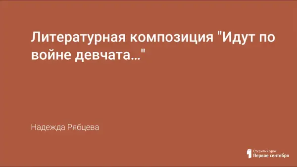 Представлена литературная композиция «Идут по войне девчата», которую можно использовать как для внеклассной работы, так и на уроках литературы. В ней использованы стихи Ю.Друниной, материал из книги С.А. Алексиевич «У войны не женское лицо», который использован для написания небольшой сценки.