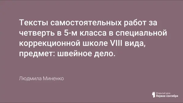 В статье представлена самостоятельная работа за первую четверть в 5-м классе. Представлена поэтапная технология выполнения шва в подгибку с закрытым срезом шириной до 1 см; технология пришивания пуговиц; последовательность обработки вешалки и втачивание её в шов в подгибку с закрытым срезом.
