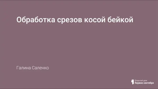 План-конспект открытого занятия, на котором учащиеся учатся обработке срезов изделия косой бейкой новым способом. Тип занятия: комбинированный (сообщение новых знаний с первичным закреплением и повторением ранее изученного материала). Цель занятия – реализовывать решение задачи обработки срезов и поэтапную обработку горловины и других срезов.