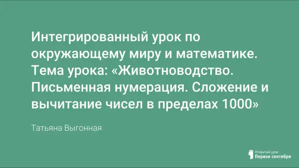 Задачи урока: вспомнить письменную нумерацию в пределах 1000, закрепить сложение и вычитание чисел в пределах 1000; повторять решение задач; закрепить с учащимися отрасль сельского хозяйства – животноводство и его направления; ознакомить с особенностями разведения и содержания домашних животных.