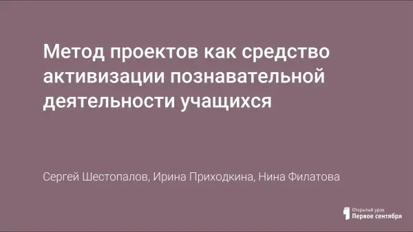 Метод проектов как средство активизации познавательной деятельности учащихся