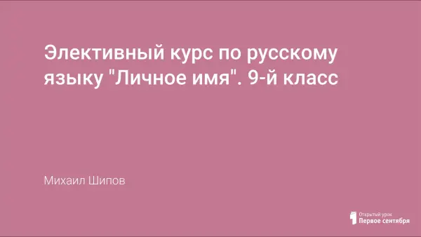 Ономастика как раздел языкознания специально не изучается в школе. Как правило, обращение к собственным именам на уроках русского языка сводится к правилам написания и употребления собственных имен в речи. Но онимы (собственные имена) многоуровневы, многосторонни. Данный элективный курс рассчитан на обучающихся 9-х классов общеобразовательных школ, он должен воздействовать на учеников в плане приобщения их к филологическим знаниям социокультурного характера.
