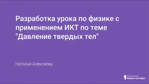 Первая тема в главе «Давление твердых тел, жидкостей и газов» в 7-м классе Урок вводит понятие давления и единиц его измерения, при помощи интерактивных моделей, показывается, что давление зависит от площади и силы, проводится исследование, в результате которого учащиеся делают вывод о зависимости давления и площади. ИКТ на уроке реализуется как демонстрация интерактивных моделей.