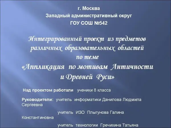 Интегрированный проект из предметов различных образовательных областей по теме "Аппликация по мотивам античности и Древней Руси"