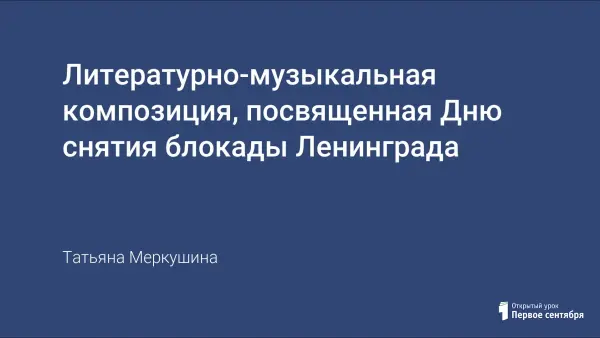 Литературно-музыкальная композиция посвящена одной из трагических страниц Великой Отечественной войны – блокаде Ленинграда. Мероприятие рассчитано на учащихся старших классов. Материалы можно использовать как для проведения вечера в актовом зале, так и для классного часа.