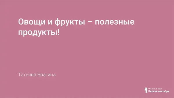 Цель мероприятия: расширение знаний о полезных свойствах овощей и фруктов, формирование представлений о здоровом питании. Мероприятие проводится как творческая презентация.