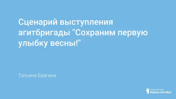 Агитбригада - одна из форм работы экологического кружка. Ее цель - привлечь внимание к проблеме уничтожения первоцветов. Сценарий сопровождается презентацией и может быть использован на уроках и во внеурочной деятельности.