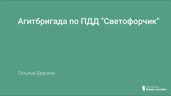 В статье представлен сценарий выступления агитбригады по ПДД «Светофорчик». Цель – профилактика ДТТ, пропаганда ПДД, закрепление навыков безопасного поведения на дороге. Материал можно использовать как во внеклассной работе, так и на уроках ОБЖ.