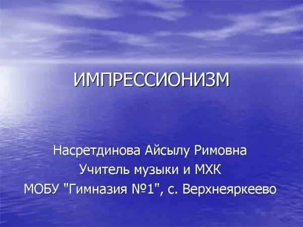 Целью урока является знакомство учащихся с новым направлением в искусстве – импрессионизмом. Задача урока – показать отличие импрессионизма от традиционного искусства, выяснить, как это новое направление в художественно-изобразительном искусстве воплощается в музыке и живописи.