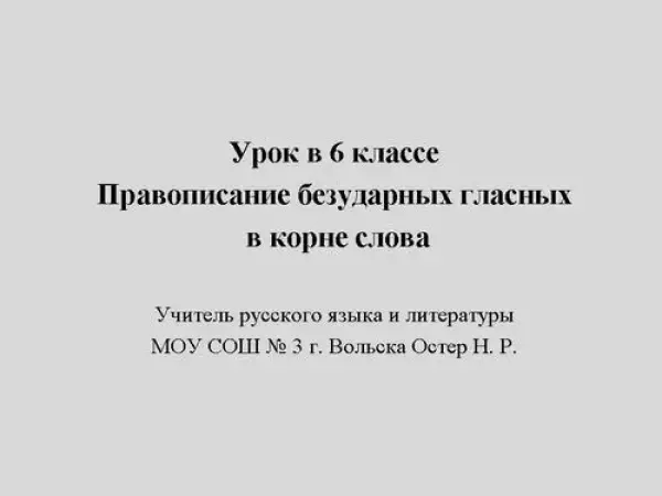 Правописание безударных гласных в корне слова. 6-й класс