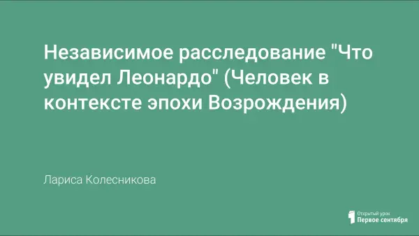 Урок приглашает к исследованию проблемы, которую учащиеся решают самостоятельно, опираясь на знания. Это дает возможность понять, как в недрах прошлого вызревают ростки новой культуры, что позволяет представить развитие мировой культуры как единый и целостный процесс.