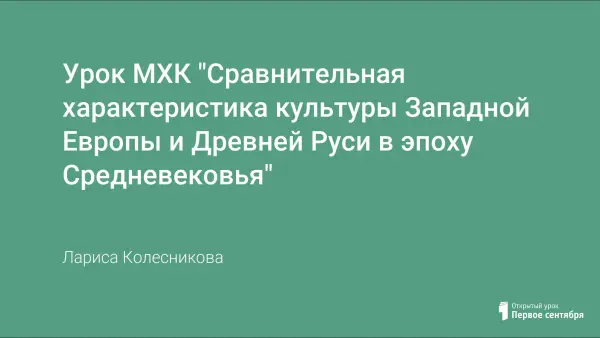 Урок "Диалоги в пространстве культуры" показывает пути развития западной и русской культуры на примере эпохи Средневековья. В представлении учащихся явления культуры нередко существуют изолированно. Устранить несоответствие и рассмотреть эпоху Средневековья в едином социокультурном пространстве ‒ цель урока.