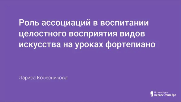 Работа раскрывает новые пути в воспитании учащихся ДМШ. Обогащение художественно-образного мышления учащихся - важная задача обучения, ведь от того, насколько мышление наполнится образным содержанием и ассоциативными связями, зависит успех развития ребенка. Педагогу следует стремиться к тому, чтобы виды искусства не существовали изолированно в сознании ученика, а образовывали единый комплекс мира добра и красоты.