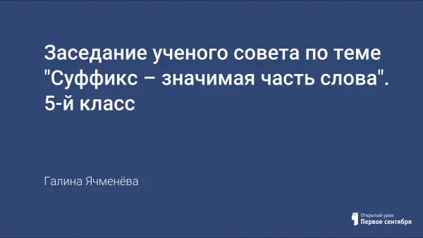В ходе урока учащиеся знакомятся с разными значениями суффиксов, совершенствуют умение образовывать новые слова. Ребята учатся выступать перед аудиторией с собственной презентацией по значениям суффиксов, уменьшительно-ласкательным формам имён одноклассников. Особое внимание на уроке уделено знакомству с профессиями, вопросам культурного обращения учеников друг к другу.