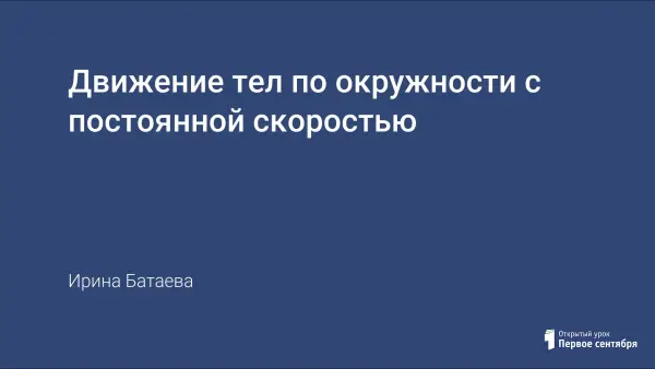 Урок предназначен для изучения и первичного закрепления знаний по теме «Движение тел по окружности с постоянной скоростью». В ходе урока ученики усваивают основные характеристики вращательного движения и выделяют его особенности.