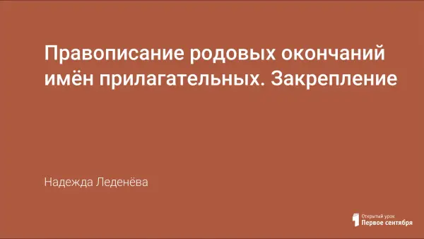 Представлен конспект урока по теме "Правописание родовых окончаний имён прилагательных. Закрепление".