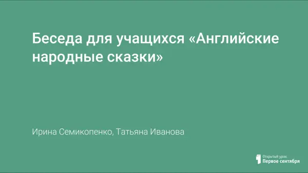 Беседа для учащихся «Английские народные сказки»