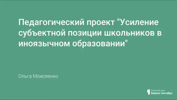 Цель проекта: исследовать методики формирования и развития субъектности школьников средствами иностранного языка.