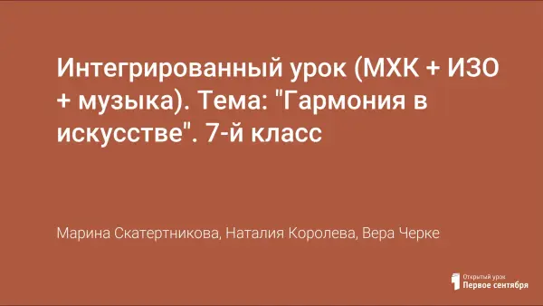 Разрабатывая и проводя урок, авторы попытались показать, как через межпредметное содержание можно выходить на личностные результаты, учитывая особенности возраста детей, ориентировать и мотивировать учащихся на осознанное восприятие красоты и гармонии окружающего мира.