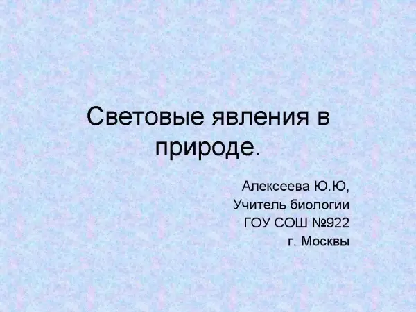 Конспект урока по теме "Световые явления в живой и неживой природе" в курсе природоведения. 5-й класс