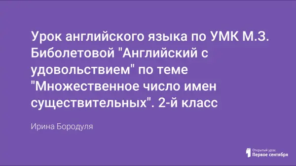 Урок английского языка по УМК М.З. Биболетовой "Английский с удовольствием" по теме "Множественное число имен существительных". 2-й класс