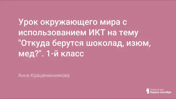 Цели урока: расширить знания о растениях используемых человеком; расширить знания учащихся о получении изюма, шоколада и меда. Принцип межпредметности позволяет согласовывать различные аспекты взаимоотношений с окружающей средой через пословицы, стихи, музыку, сказку.