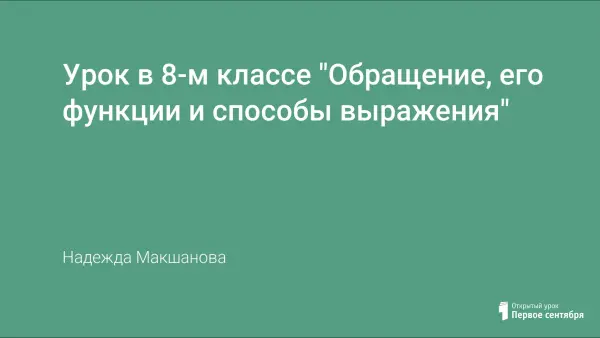 Цель урока: расширить представление об обращении, его функциях и способах выражения.