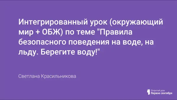 Урок помогает обобщить знания детей о правильном, безопасном поведении на воде, на льду, рассказать о значении воды для людей, об опасности загрязнения воды, об охране воды в нашей стране, повторить три состояния воды, развивать умение пользоваться полученными знаниями.