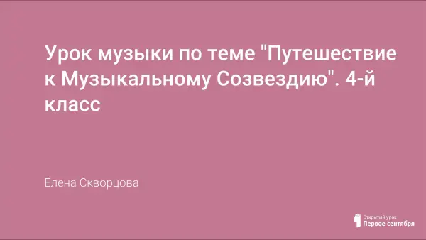 Урок-путешествие, на котором в игровой форме повторяется разученный вокально-хоровой репертуар, элементы музыкальной грамоты, знания о музыкальных инструментах. На уроке корректируется память, внимание, развивается слухо-речевая и двигательно-речевая координация, а также воображение и творческие способности. Игровая форма урока значительно оптимизирует образовательный процесс и делает урок интересным и запоминающимся.
