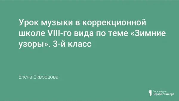 На уроке дети не только поют, выполняют ритмические движения под музыку, но и рисуют зимние узоры. В игровой форме ученики исполняют вокально-хоровой репертуар о зиме, разученный за период обучения. На протяжении урока поддерживается интерес к обучению. Корректируется память, развиваются мелкая моторика и двигательно-речевая координация, воображение и творческие способности.
