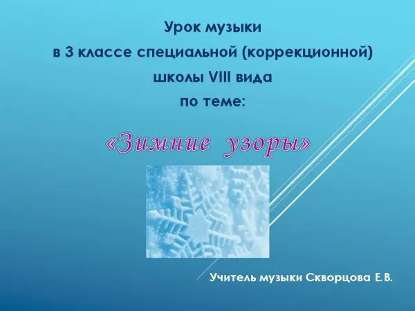 Урок музыки в коррекционной школе VIII-го вида по теме «Зимние узоры». 3-й класс