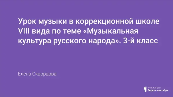 Интегрированный урок музыки воспитывает в детях любовь к родине, интерес к русской народной музыке. На уроке дети не только поют, двигаются под музыку, играют на детских музыкальных инструментах, но и рисуют. В игровой форме ученики исполняют разученные ранее русские народные песни, повторяют известные русские народные инструменты в форме разгадывания загадок о них.