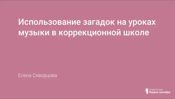 На уроках музыки в коррекционной школе я часто использую игровые моменты, игровые ситуации, которые оживляют внимание детей, делают процесс обучения для них более интересным и увлекательным. Да и преподнесённый в игровой форме теоретический материал запоминается учащимися значительно легче. Дети всех возрастов очень любят загадки, которые оживляют урок, обогащают речь, развивают мышление, память. Лаконичные по форме, загадки дают как бы словесный портрет предмета, описывают явления, характеризуют их с новой, неожиданной стороны. Учитывая конкретный характер мышления школьников с интеллектуальными нарушениями, лучше отбирать такие народные и авторские загадки, в которых даны яркие приметы, названы характерные признаки.
