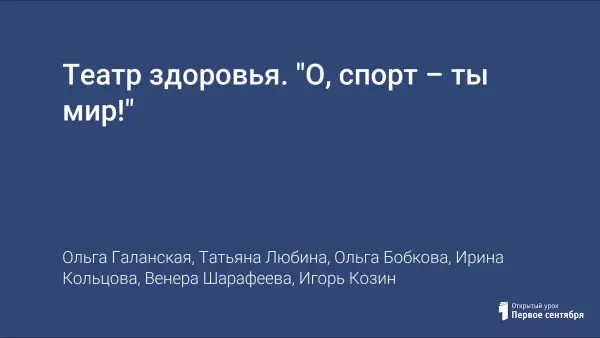 Сценарий театральной постановки, посвященной истории Олимпийских игр и Олимпиаде 2014 в г. Сочи. Цель – пропаганда здорового образа жизни. Постановка была представлена в рамках муниципального тура Республиканского конкурса школьных театров здоровья и заняла 2-е место.