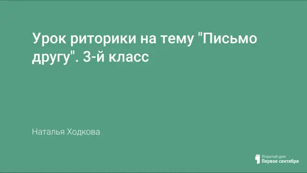 Урок риторики «Письмо другу» один из первых по теме «Эпистолярный жанр». Познакомившись на уроке с основной структурой письма, на следующих уроках развития речи можно перейти к более сложной. Изучение темы часто не вызывает интереса у детей, так как многие считают, что время писем ушло. Автор изменила тему урока и проинтегрировала с историей (историей родного края).