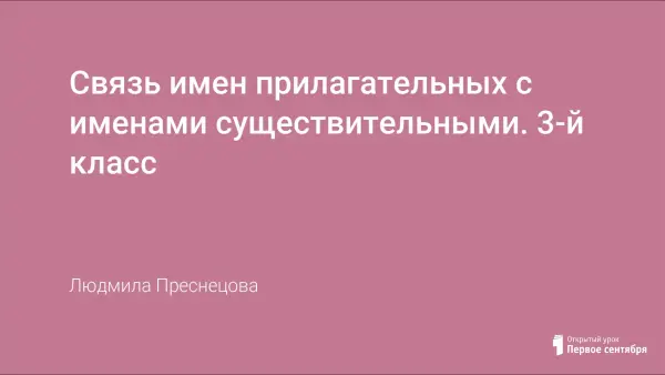 Урок опирается на изученную тему "Имя существительное" и служит связующим звеном с последующими уроками "Безударные гласные в окончаниях имен прилагательных", а также является важным в отработке алгоритма подбора имени прилагательного к имени существительному. В ходе урока дети делают важный вывод: имя прилагательное согласуется с именем существительным и стоит в том же роде, числе и падеже, что и имя существительное, к которому оно относится.