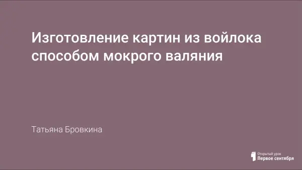 Урок в 8-м класса с использованием компьютерных технологий служит ознакомлению с историей возникновения валяния войлока и видами валяния, изучению стиля русского народного творчества, приобретению навыков подбора гармоничных цветовых сочетаний, работе с войлоком, выполнению основных приёмов, закреплению практических знаний и умений, формированию и развитию познавательного интереса к предмету, рукоделию, развитию самостоятельности.