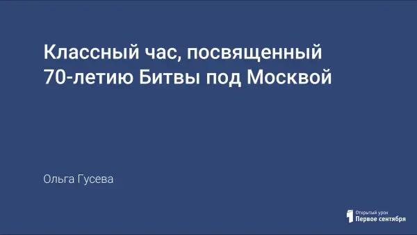 Классный час, посвященный 70-летию Битвы под Москвой, развивает чувство патриотизма, любви к родине.