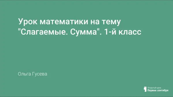 Урок математики в 1-м классе знакомит учащихся с понятиями «слагаемые», «сумма». Учащиеся научатся читать равенства, используя математическую терминологию (слагаемые, сумма); планировать, контролировать и оценивать учебные действия в соответствии с поставленной задачей и условиями её выполнения; определять наиболее эффективные способы достижения результата; оценивать себя, границы своего знания и незнания, работать в паре и оценивать товарища.