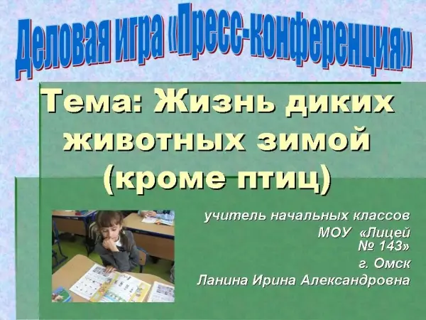 Цель урока: дать представление о том, как зимуют дикие звери. Показать связь их жизни с состоянием неживой природы и растений зимой. Познакомить учащихся с основными правилами охраны животного мира, взаимосвязь мероприятий по охране природы.