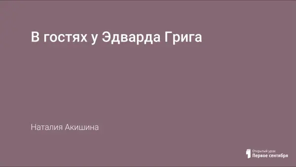 В данной работе предлагается сценарий, посвященный творчеству великого норвежского композитора Эдварда Грига, написанный в виде сказки, что делает его понятным и интересным для детей младшего школьного возраста, но в то же время, использование высокохудожественного материала, стихов поэтов Серебряного века делает возможным постановку этого спектакля среди учащихся средних классов.