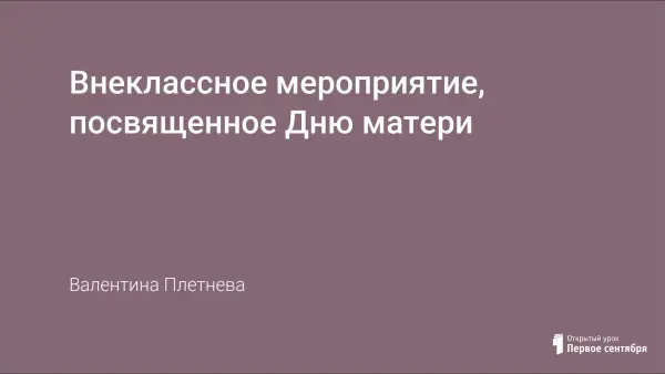 Предложенный сценарий поможет провести праздник ко Дню матери. Каждый родитель может испытать чувство радости и гордости за своего ребенка. Цель праздника — воспитывать у учащихся уважение и любовь к самому родному человеку – матери.
