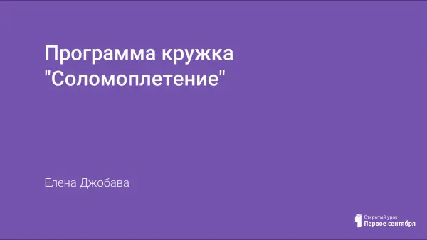 В данной статье разработано содержание и дидактические средства обучения «соломоплетению» для младших школьников на кружковых занятиях. Представлена учебная программа по созданию сувениров из соломки с учетом развития познавательных способностей и интересов младших школьников к традициям прикладного искусства. Курс по соломоплетению позволяет учащимся реализовать свои познавательные потребности в области прикладного творчества.
