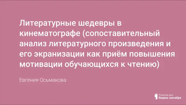 Как же пробудить интерес к чтению? Как воспитать читающую личность, осознающую надобность читательской культуры для него самого в дальнейшем? Автор статьи считает что, один из способов – это привлечение к изучению литературного произведения близких ему видов искусств, в частности, кино.