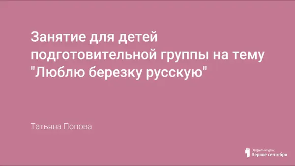 Занятие расширяет знания детей об образе березы в поэзии, музыке, искусстве, детском изобразительном творчестве. Воспитывает познавательный интерес, бережное отношение к природе, развивает чуткость и восприятие красоты окружающего мира.