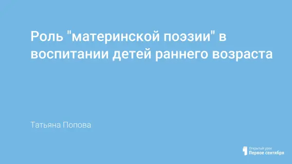 Влияние «материнской поэзии» на формирование личности ребенка неоспоримо. С помощью колыбельных песенок, народных потешек и пестушек мы можем помочь малышу приобрести необходимые знания, дающие уверенность в своих силах, тепло, ласку, любовь, радостное восприятие окружающего мира.