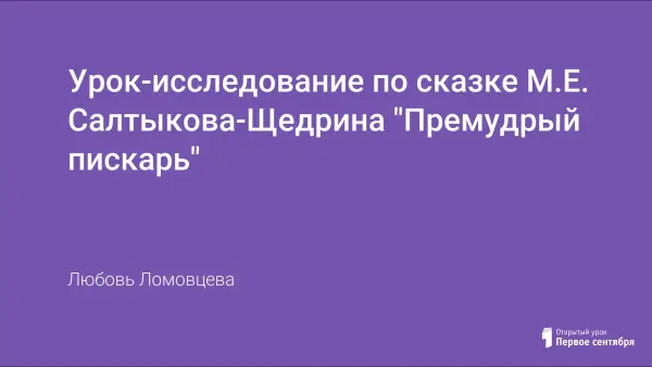 Урок-исследование по сказке М.Е. Салтыкова-Щедрина «Премудрый пескарь» является одним из этапов изучения творчества сатирика. Цель урока: выявить авторскую позицию в сказке «Премудрый пескарь», идейно-художественное своеобразие произведения; сформировать у учащихся представление о специфике авторской, сатирической сказки как явлении искусства, о своеобразии таланта М.Е. Салтыкова-Щедрина; формировать навык работы с художественным текстом, умение работать со словарями, дополнительной литературой.